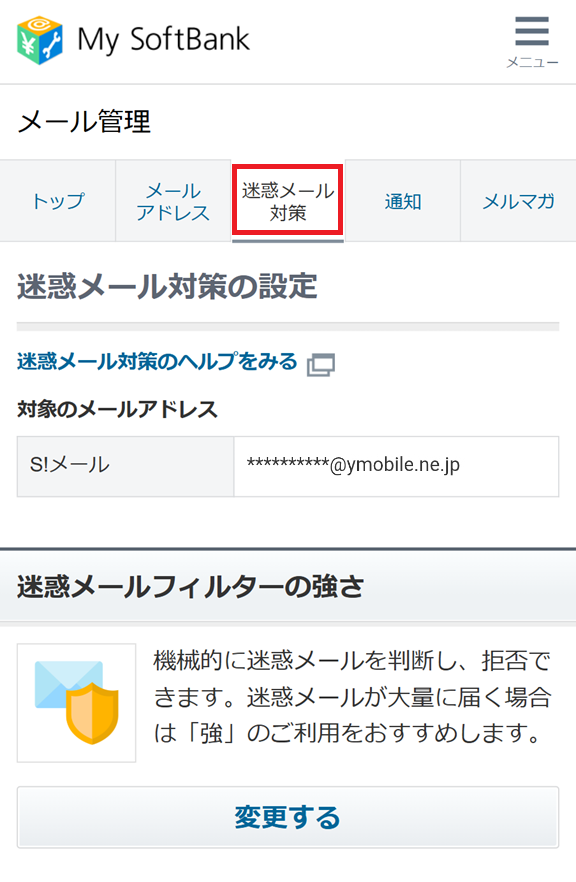 4)「迷惑メール対策 SMS/MMS(ymobile.ne.jp)」を押す